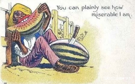 而當時的南方白人羣體,極其歧視黑人,“黑人愛吃西瓜”成了白人羣體嘲諷黑人的口頭禪,並製作了大量的漫畫和宣傳圖文來詆譭黑人。