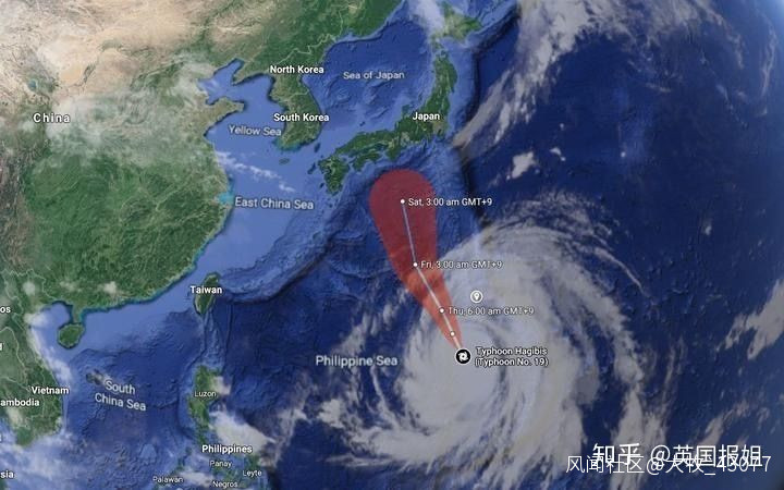 從各家媒體發佈的圖片來看,這一次颱風的面積比日本還大,並且直直地向日本本島衝去…