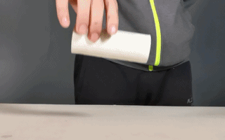第一個實驗,由於紙筒與桌面之間存在彈力,紙筒會發生反彈,紙筒受彈力作用會發生翻轉。經過仔細的觀察我們可以發現,不同的釋放狀態,紙筒翻轉過程中的重心高度變化不同。如下圖所示,當小紙筒直立釋放時,紙筒的重心在翻轉過程中是越來越低,這一過程重力做正功,紙筒翻轉的速度越來越快,無法穩定直立。當小紙筒水平釋放時,紙筒的重心在翻轉過程中卻是越來越高,所受的重力做負功,紙筒翻轉的速度越來越慢,從而可以在直立狀態時靜止穩定。這個實驗需要多加練習,找到合適的高度才能成功。