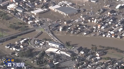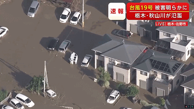 長野縣內千曲川決堤,被淹情況嚴重,看房屋被淹的狀態,至少已經沒過整個一樓的狀態。