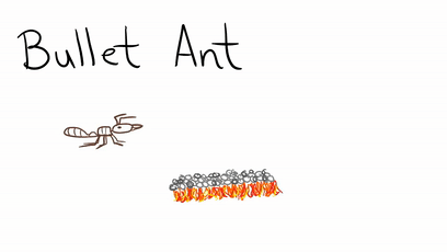 最後,這場「看誰蜇人最痛」比賽的冠軍名叫子彈蟻,就像它的名字一樣,據説被咬到會有種被子彈打到的感覺。