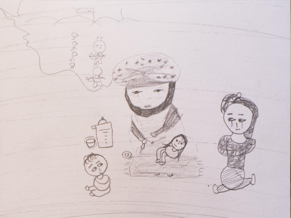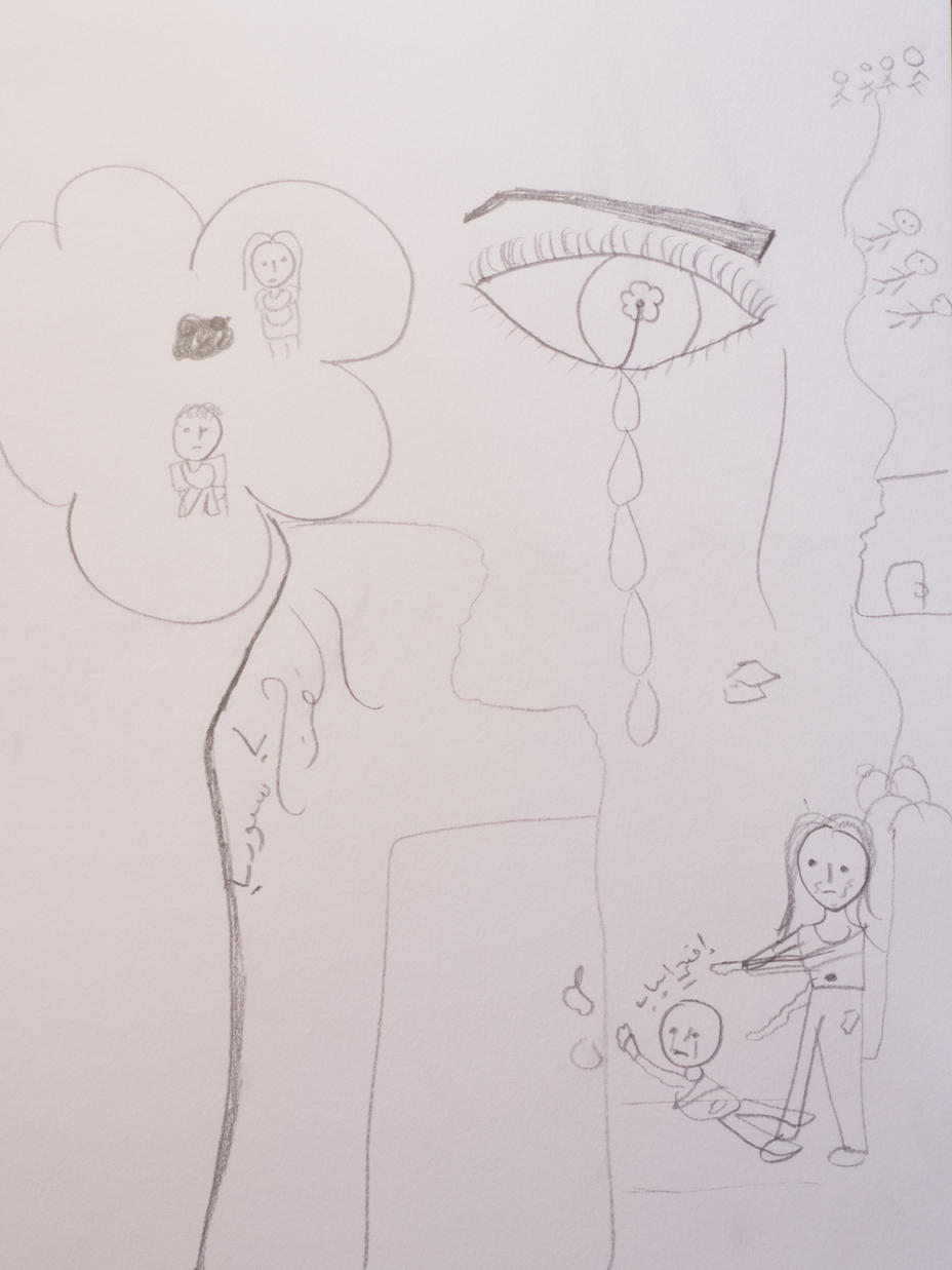 當我感到有壓力時,我不會表露我的悲傷,也不會發泄我對別人的憤怒;我把它畫出來。我拿起鉛筆和紙,把裏面的東西都拿出來。當我完成我的繪畫,我看着它們,看到自己的記憶。我想,這就是我過去的樣子嗎?我應該回到以前的樣子。