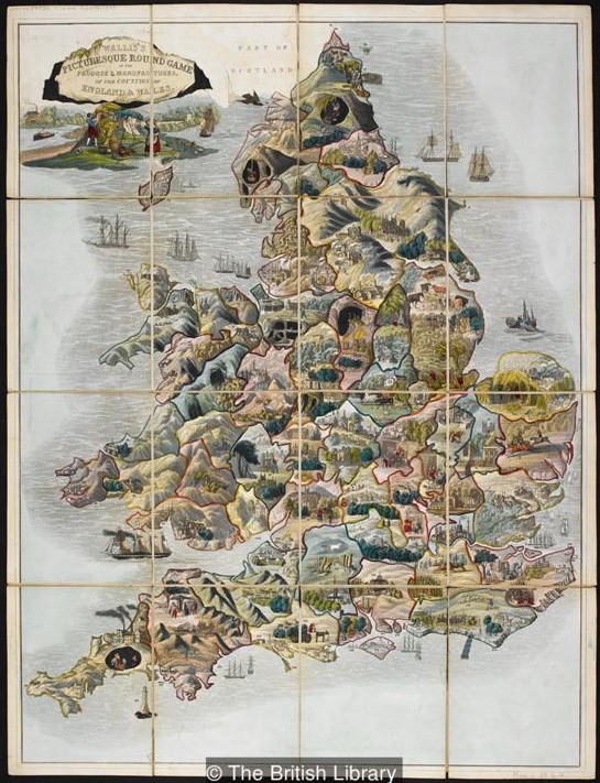 到18世紀晚期,地圖漫畫變得很流行。這兩張的作者是著名的圖畫藝術家Robert Dighton,連同另一張愛爾蘭的圖,被當做藝術印刷品出售。