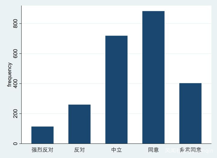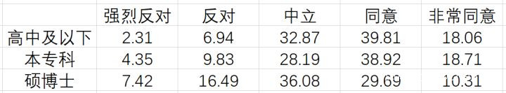 15.7%的被訪者選擇了「反對」或「強烈反對」,55.1%的被訪者選擇了「同意」或「非常同意」。
