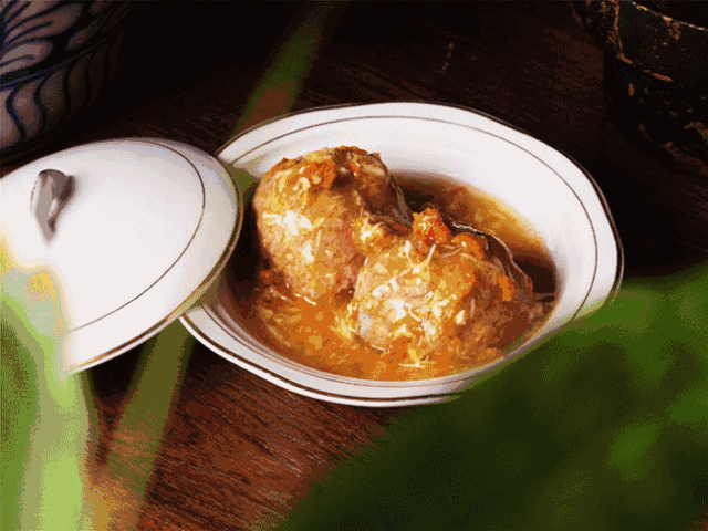 福建當地有道經典食物叫紅蟳飯,用火腿鴨肉豬肚鴨胗蝦米香菇竹筍爆炒糯米飯,放上拆開的紅蟹,包上荷葉上鍋蒸,配料的油脂香混着荷葉的清香和螃蟹的鮮香,滋味美好。