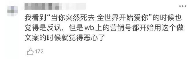 就像昨天雪莉事件中那句意外走紅並刷屏的“當你開始死去,全世界突然愛你”,半天之內變味兒之快、失控之離譜,令人咋舌。