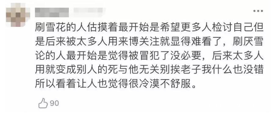 還有人反“雪花”論,採取的表達方式卻讓人覺得是將網絡暴力之惡完全剔除在外、甚至找理由開脱,由此又引發了新的爭論……