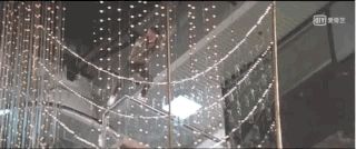 一場追逐之後,他從高空跳出,抓住大堂中間掛滿彩燈的立柱滑向地面,穿過玻璃結構的房屋,落在大理石地板上。