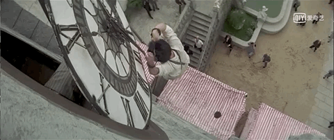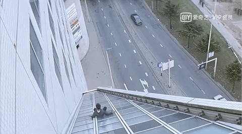 一次導演現場要拍一場重頭戲,需要演員跨越高空陽台欄杆,在空中翻轉之後,穩穩落地,展開打鬥。