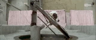 元彪不放心,事先將一個與成龍同等重量的沙袋從鐘樓頂端扔下。沙袋穿過兩層布篷落地後,瞬間破裂,沙粒飛得滿地都是。成龍傻了眼。