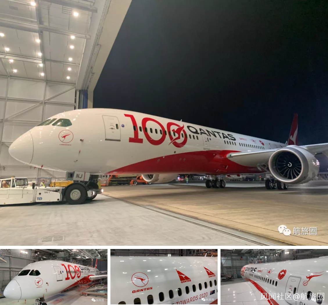 澳洲航空Qantas將在明年成為全球航企中的又一家“百年老店”,澳航今天公佈了其百年紀念塗裝。這將是澳航第10架787,名為“Longreach”,1920年澳航在昆士蘭州的winton成立,第二年總部遷往170公里外的Longreach。機身還上展示了澳航曾使用過的部分標誌。