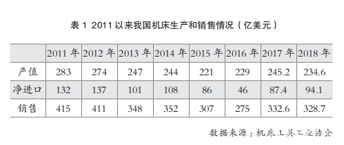 機牀工業產值連年遞減,市場萎縮。2018年,全行業產值比2011年下降17%,銷售額下降21%。