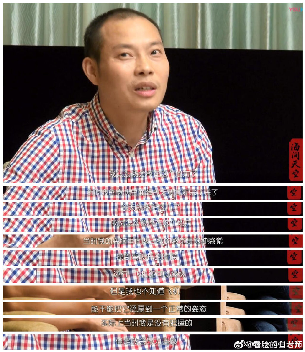 “我認為我會摔在這個地方了,當時我的念頭裏面想,今天我肯定完了完了,今天就摔在這兒了,我説怎麼會摔在這個地方,當時我的頭腦裏面兩三秒的感覺是這種感覺。摸到駕駛杆的時候,還行,飛機還可以操縱,但是我也不知道飛機,能不能把它還原成一個正常的姿態,實際上當時我是沒有把握的,但是我會盡力去做。”