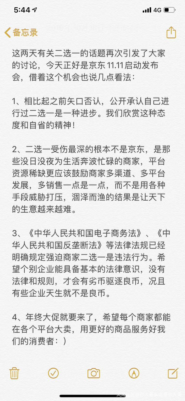 2、二選一受傷最深的根本不是京東,是那些沒日沒夜為生活奔波忙碌的商家,平台資源稀缺更應該鼓勵商家多渠道、多平台發展,多銷售一點是一點,而不是用各種手段威脅打壓,涸澤而漁的結果是讓天下的生意越來越難。