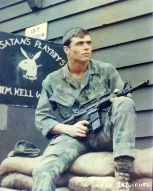 這是一張拍攝於1966年的照片,照片中這位美國大兵叫丹·莫爾,此時他正在越南,美軍正在那裏陷入戰爭泥潭。他手裏的《花花公子》雜誌是他妻子寄來的,同時寄來的還有一些巧克力片餅乾。