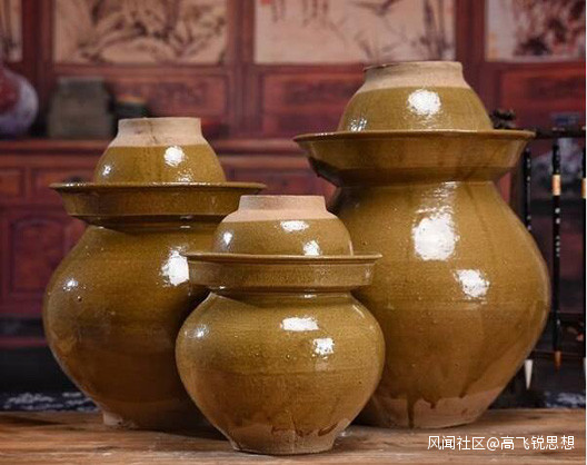 在壇蓋與壇腹接合處,有一罈沿,檐角一樣突出上翹。在蔬菜醃製過程中,要保證壇沿常年貯水不斷。壇沿處的水,使壇內蔬菜與外界隔絕,避免氧化。所以,要經常往壇沿注水。這成為我童年時候的家務之一。家務有輕有重,有繁有簡。給壇沿注水這類簡單的家務,是我和妹妹的事。家庭成員中,我和她最小;在所有家務活中,這也最輕鬆。洗衣做飯餵豬,這類複雜的事,是哥哥和姐姐的事——儘管他們有時候為此甚為不平,但又沒有辦法,因為都是父母分配安排的。