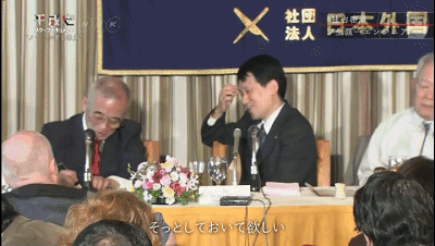 中途田中的手機鈴聲響了,他側過頭小聲地接聽了電話:“我在接受記者採訪呢…”