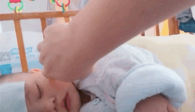 媽媽貼着退燒貼堅持着哄孩子