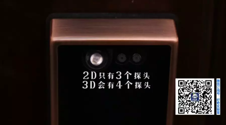 真正安全級別較高的是3D人臉識別系統。它通過3D攝像頭立體成像,一般會有4個探頭,其中兩個大的是攝像頭,另外兩個一個是紅外線探頭,用於補光,一個是可見光探頭,兩個攝像頭互相配合形成3D圖像,從而復原完整的三維世界。