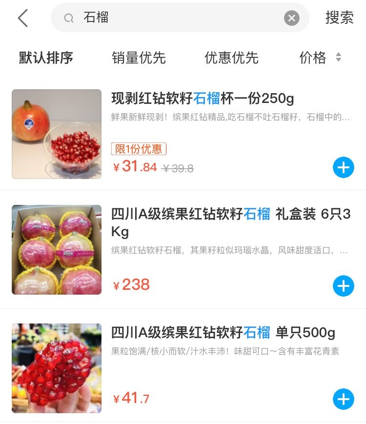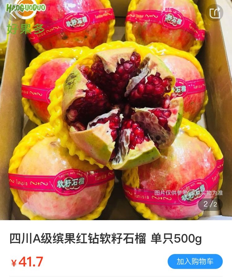 我在附近的好果多里搜索“突尼斯軟籽石榴”,出來的價格基本上就和袁立買的價格吻合了。