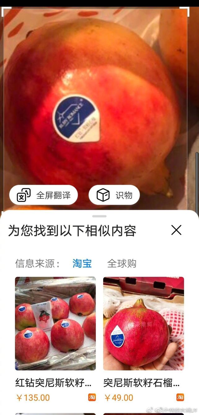 用袁立的照片去淘寶上識圖一下就會發現,這個石榴的品種是突尼斯軟籽石榴,是20世紀80年代從突尼斯引進我國的品種,也是目前世界上果仁最軟的石榴品種,是石榴中的精品。