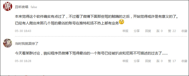目前體驗下來,該軟件沒有廣告,使用起來手感流暢,搜索功能、社交功能都挺實用。相較於“原諒寶”的原設想,這款app不依靠其他網站,單靠用户發佈相關信息和甄別投票,一方面規避了責任,另一方面,準確率會更高。