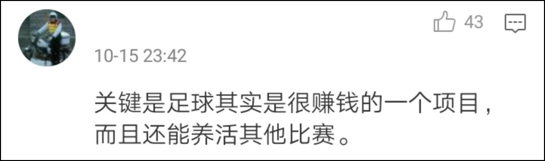不靠國家養活,還能賙濟一下兄弟項目,這就是足球這項運動的優越感來源。
