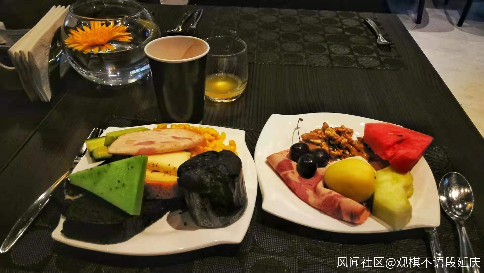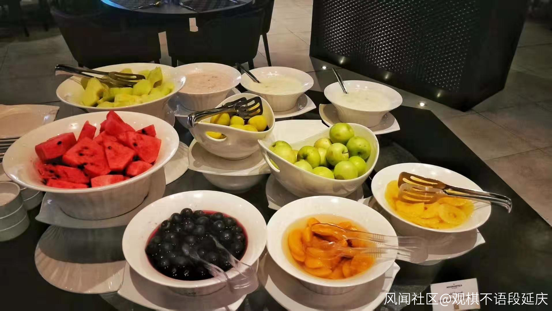尤其是免費的早餐,主食是各類蛋糕和麪包,飲料是牛奶、現磨的咖啡和鮮榨橙汁、西瓜汁和蘋果汁……,乾果累有核桃仁、瓜子仁、葡萄乾……,水果類有西瓜、哈密瓜、櫻桃、楊桃……,肉類是各種火腿,還有烤蘑菇、雞蛋披薩……,每一樣嘗一塊,肯定吃不過來。