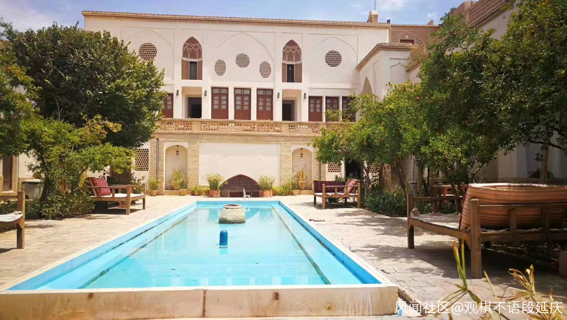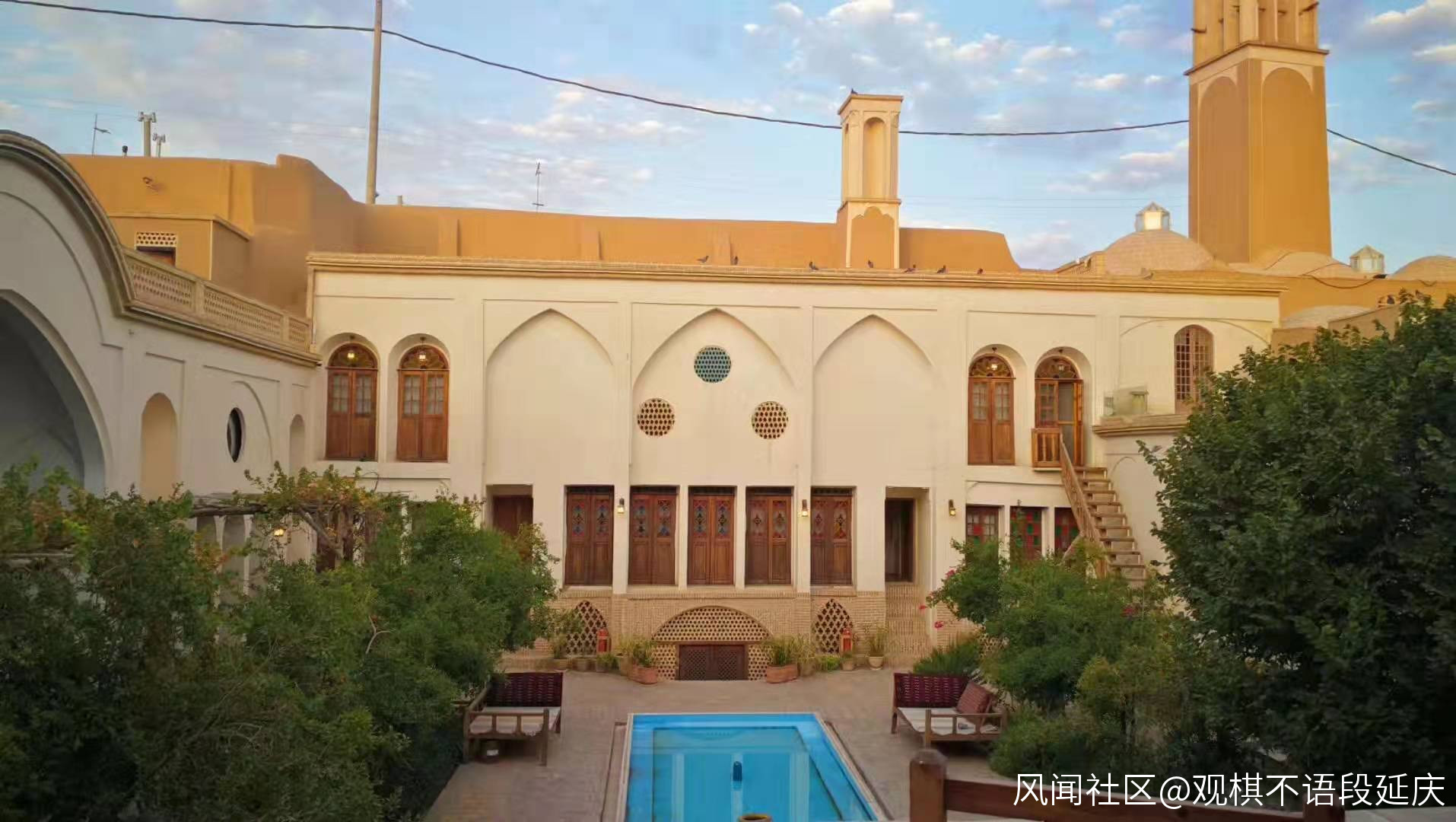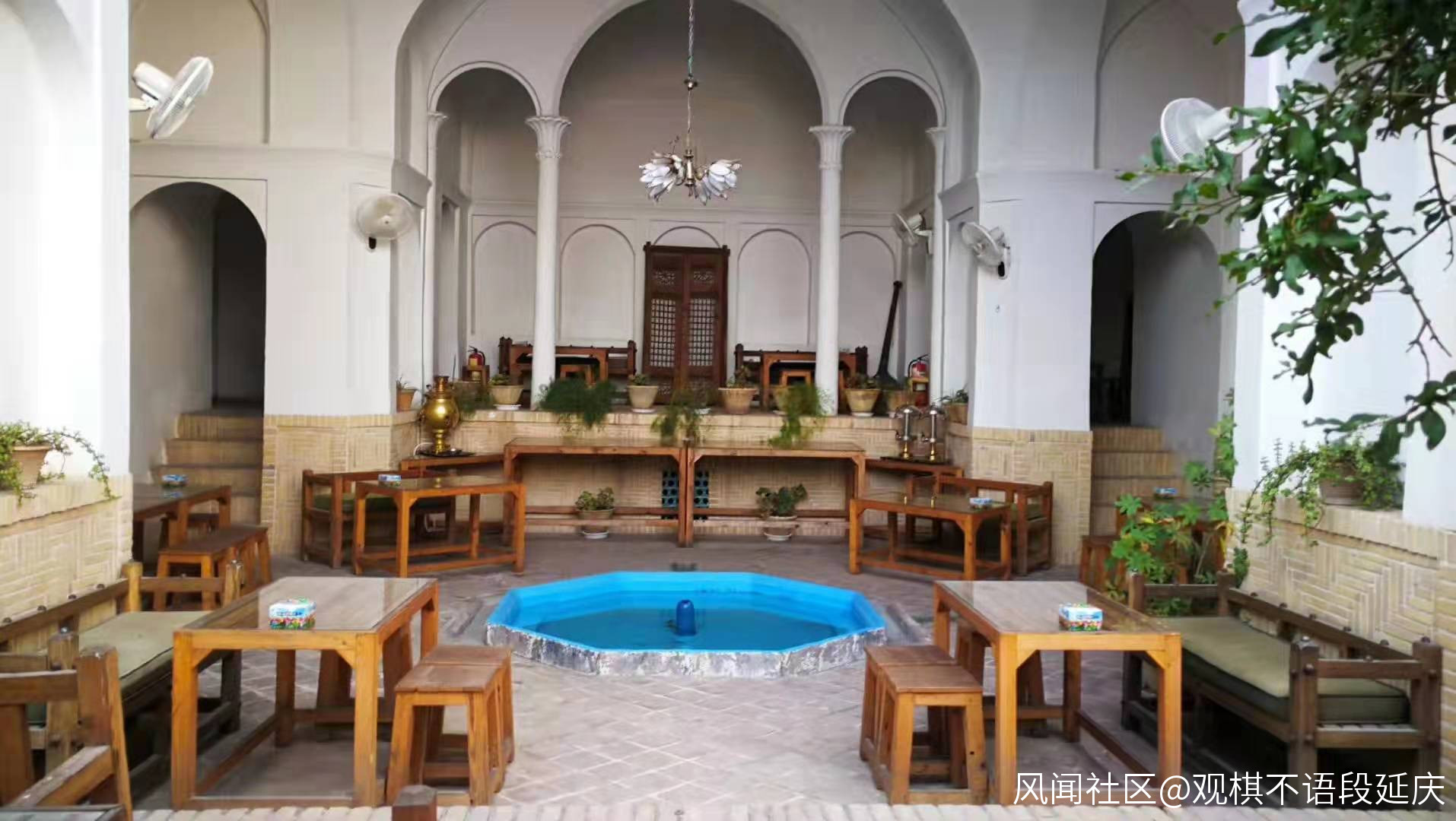 波斯標準的豪宅都是類似新疆的坎兒井似的住宅,地下有一層,所以進了大門要先下樓梯。