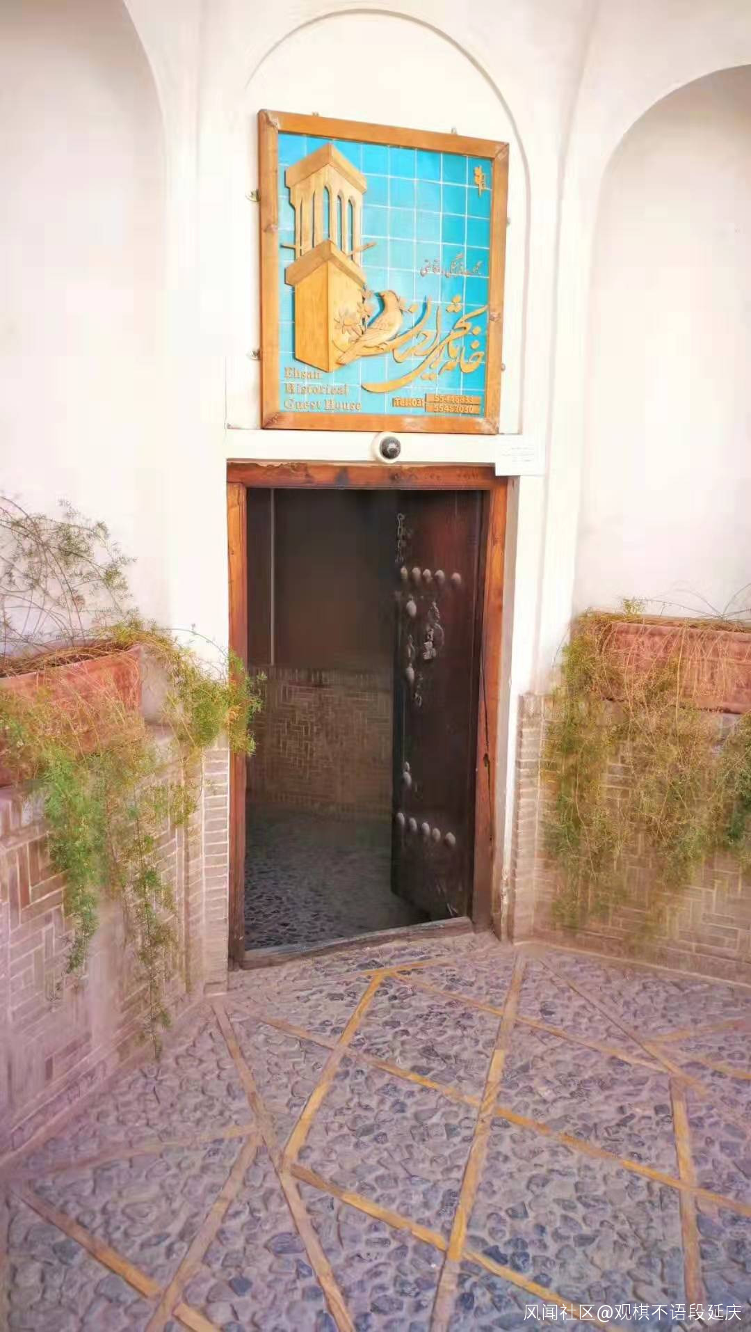 出租車一路開到我指定的民宿,KHAN-E EHSAN旅店,一座400多年波斯富商老宅改造的民宿,因為是淡季,我沒有預定,而是直接walk-on.,民宿外面的大門很小。