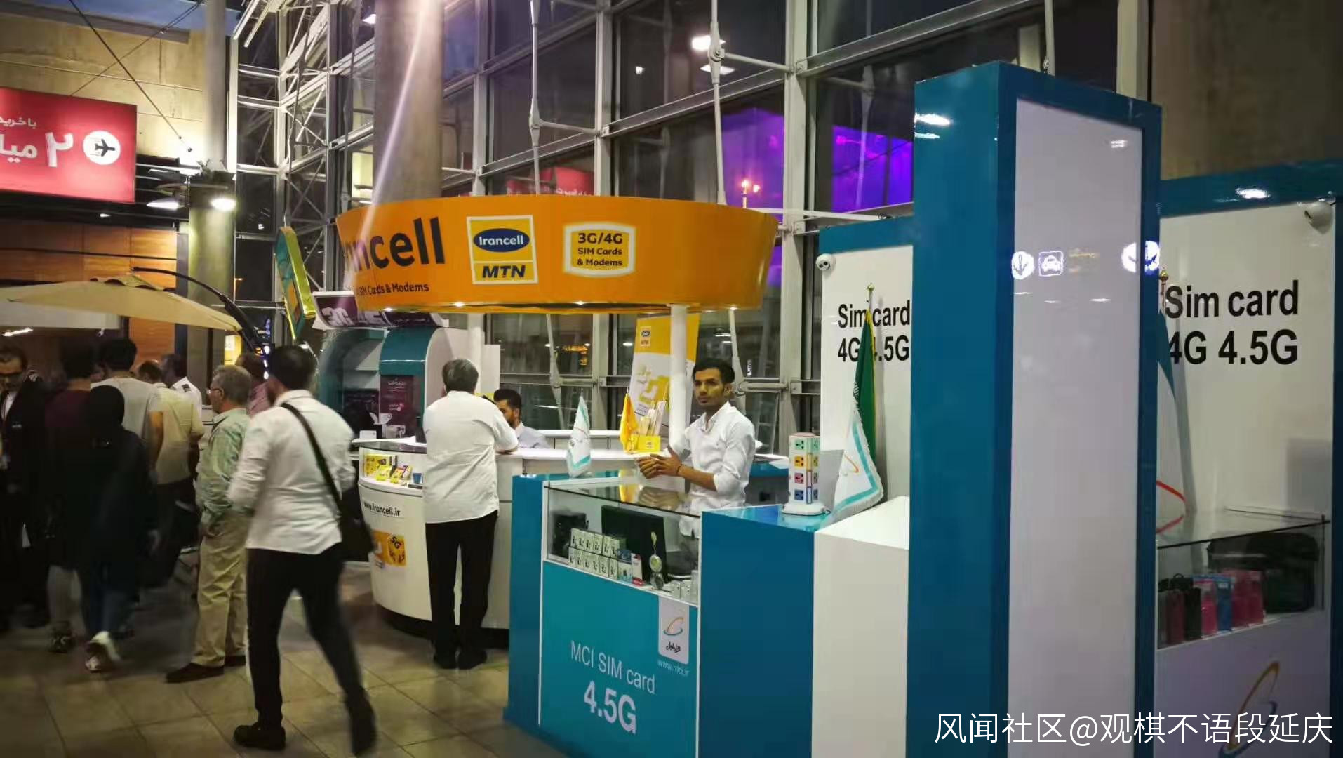 再下到機場一樓,買伊朗本地的電話卡,30天,5G流量,40人民幣,需要70萬里亞爾。機場買電話卡的是照片中的一黃、一籃兩家,據説信號都不錯。我選的黃的這家,因為當時藍的那家排隊的人比較多。只要選擇天數和流量,交錢以後,賣電話卡的人員負責給你安裝和調試。電話是即時開通,網絡好像有幾個小時的延遲