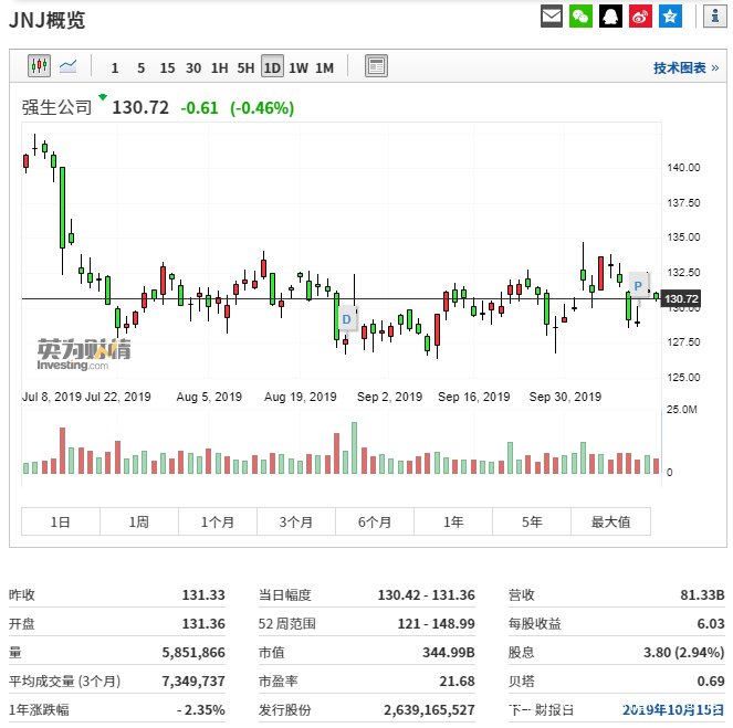 雖然財報即將公佈,而公司此前的財報業績大都超出分析師的預期,但是大部分投資者仍然對其保持謹慎態度。近期以來,強生正在面臨利培酮和阿片類藥物相關的法律訴訟。