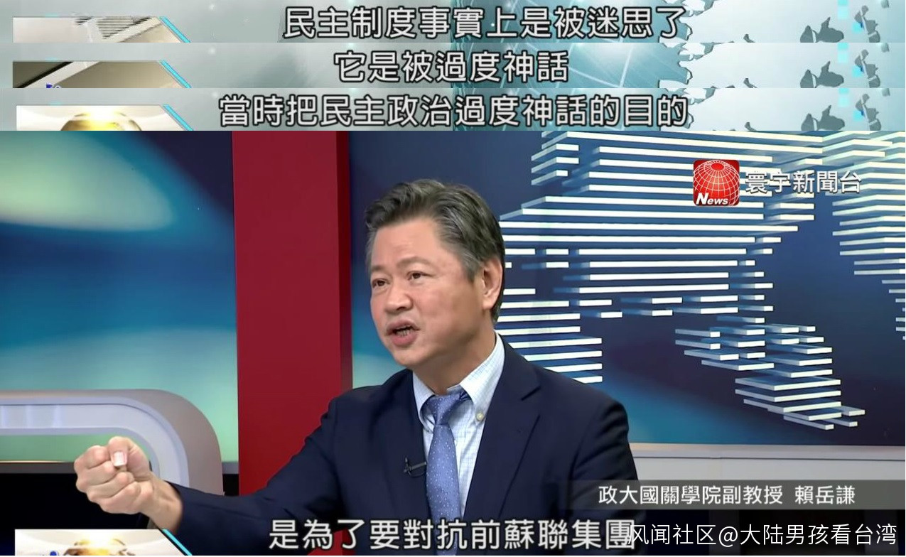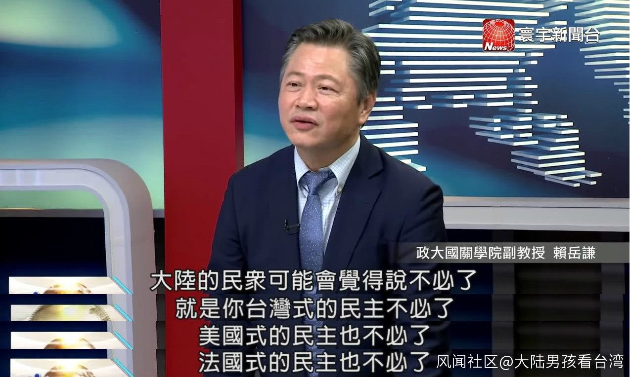 賴嶽謙的這逐一點名,就差沒有點英國式民主,基本上把所謂西方式民主下的幾種形態都給點到了。不過,像是英國的君主立憲制,大陸本身也沒有什麼皇室,也就從根源上不可能有生存發展的土壤。