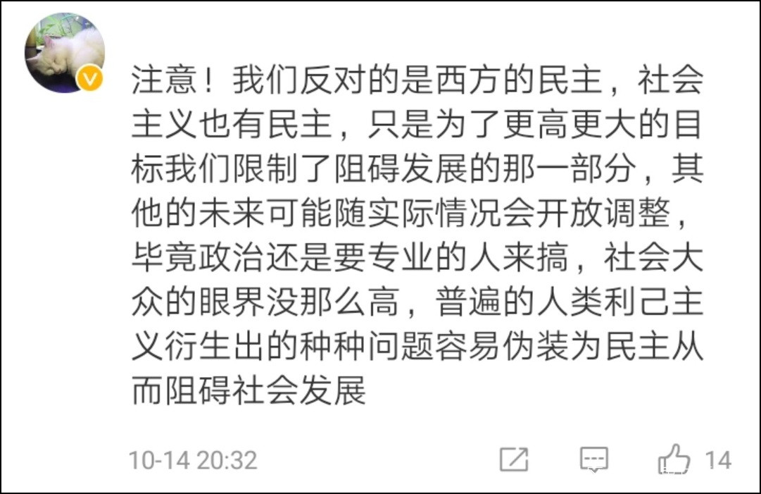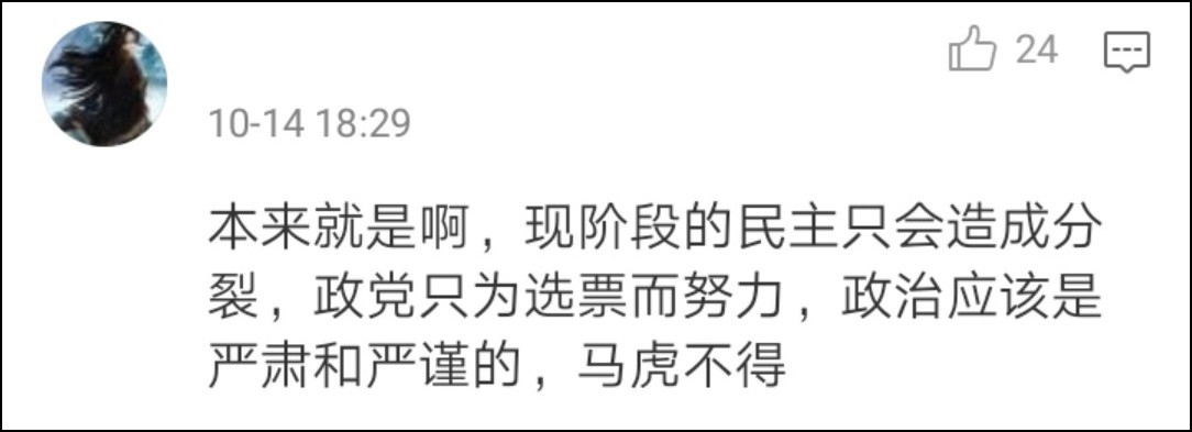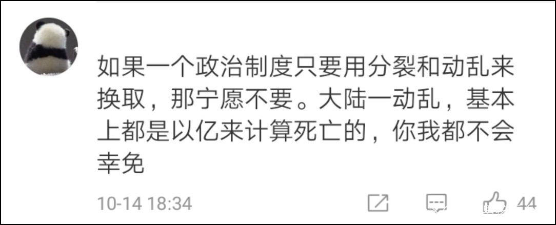 而在社交網絡上,許多的大陸網友也深表贊同,並認為賴嶽謙講出了大家對於西方式民主的心聲: