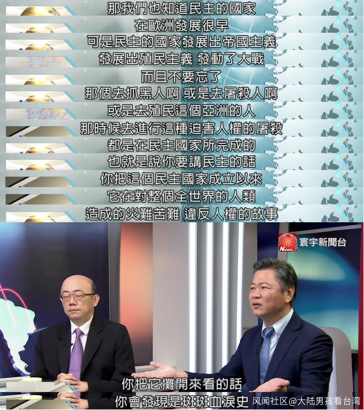 所以,“你要講民主的話,你把這個民主國家成立以來,它在對整個全世界的人類造成的災難苦難、違反人權的故事,你把它攤開來看的話,你會發現是斑斑血淚史。”