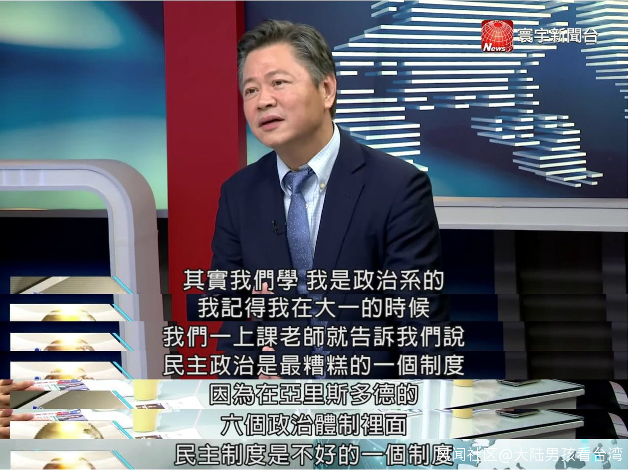 他接着説到,在自己開始就讀政治系的時候,老師就跟自己説過,民主政治是最糟糕的一個制度。