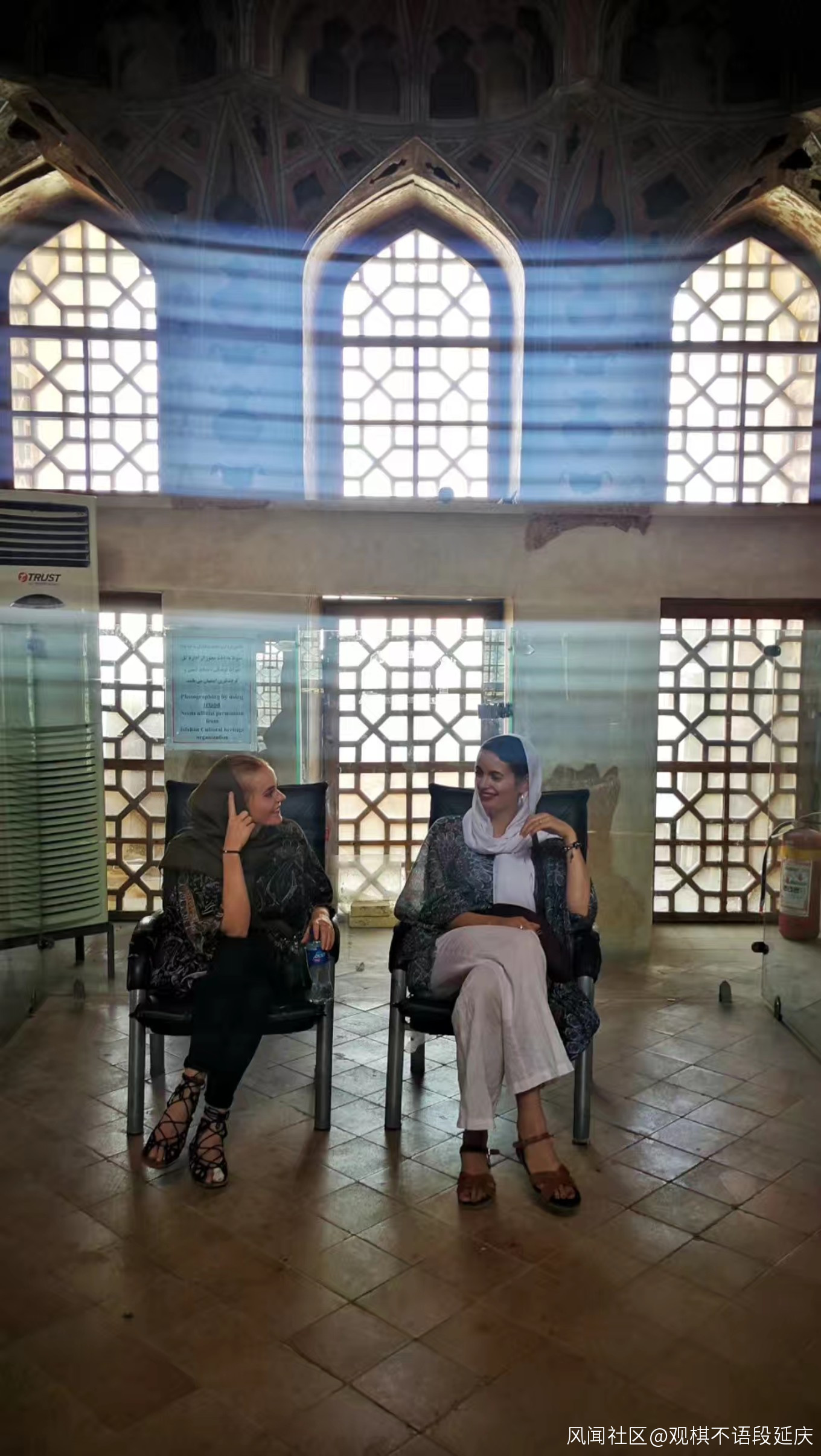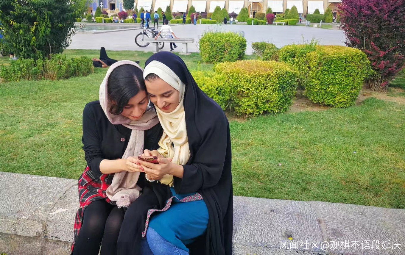 伊斯法罕 ,伊瑪目廣場,兩位小姐姐分享者手機的話題。