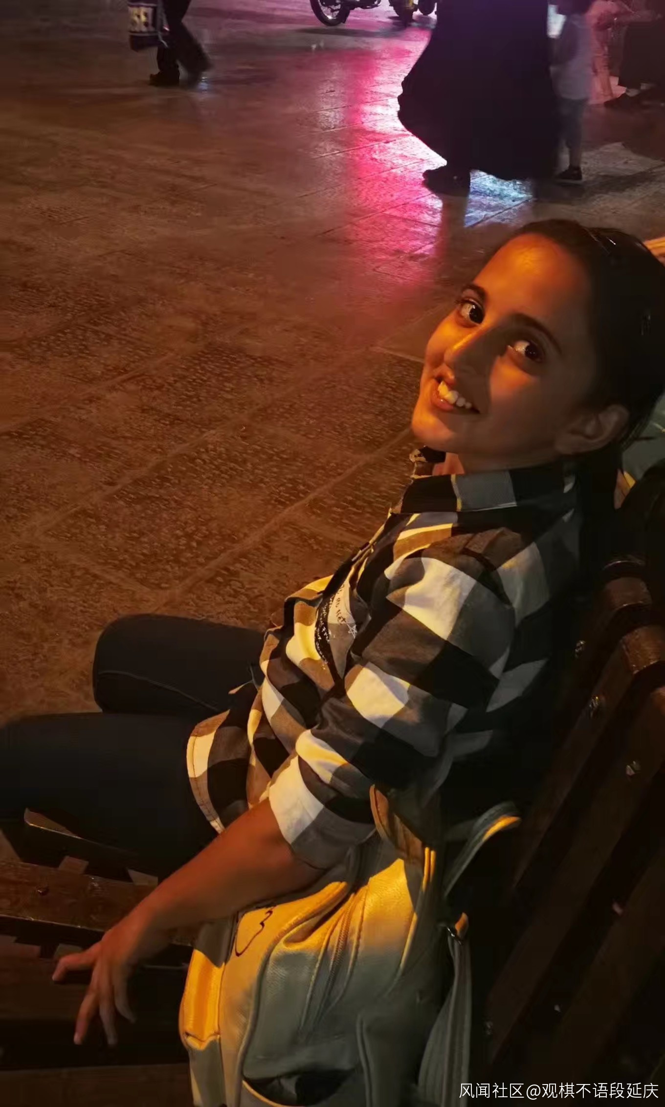 伊瑪目廣場,夜晚,走出伊瑪目廣場,在圓椅上休息,發現鄰座的小姑娘如此漂亮。