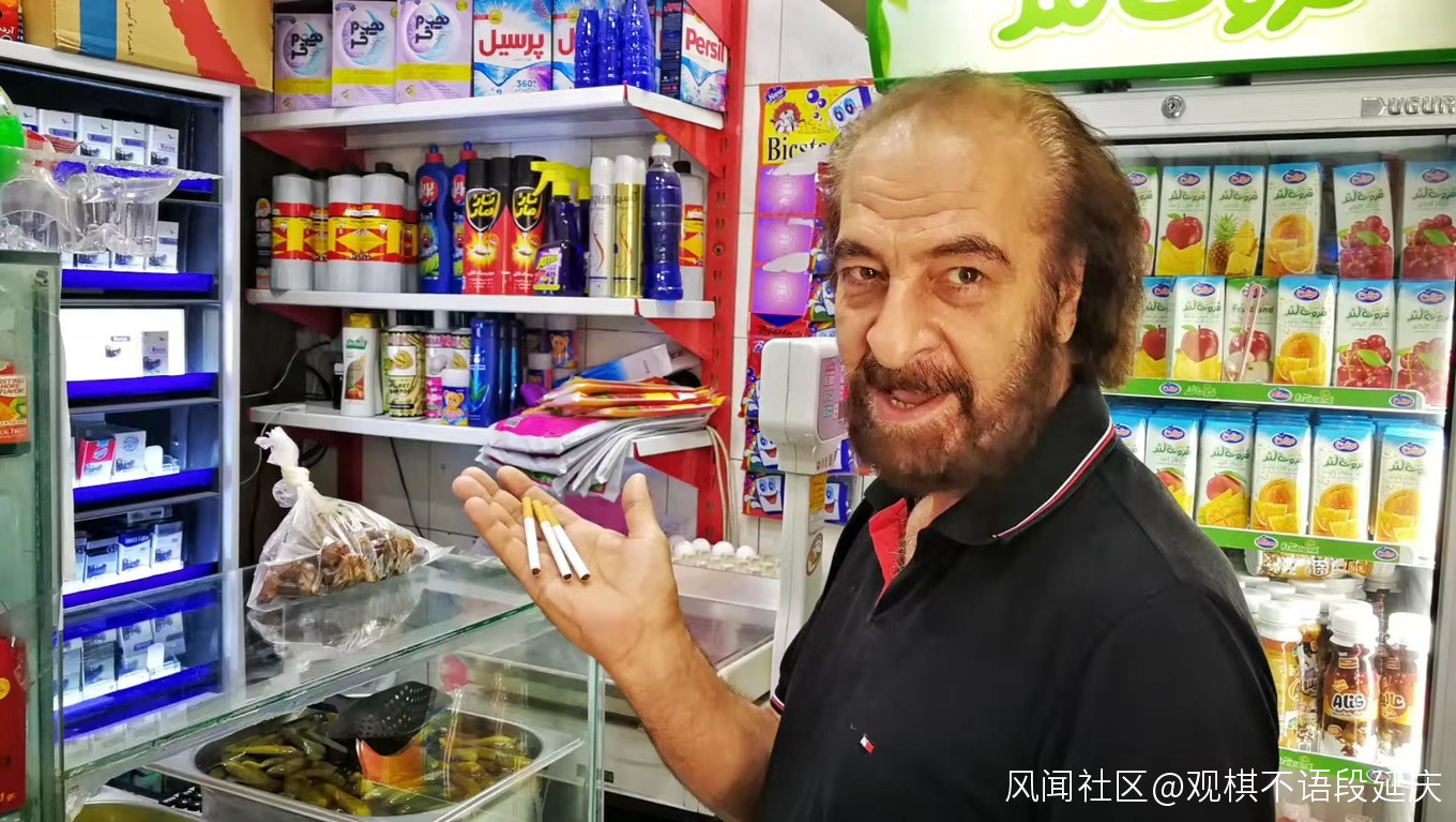 伊斯法罕 ,商店裏,這位老哥向我展示他剛買的三支煙, 伊朗 的香煙可以論支賣。