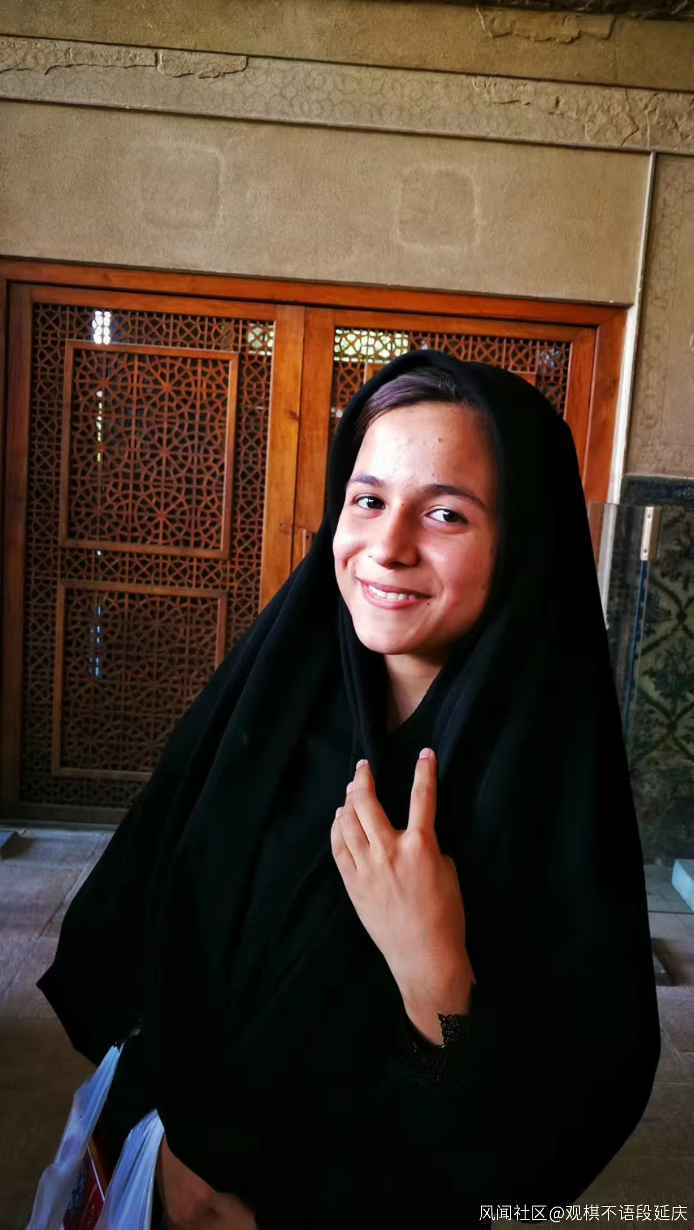 設拉子,路遇四位小姐姐,看見我這個東亞面孔的中國人,非常熱情,一定要和我合個影,照完相以後,快樂的對我擺個POSS