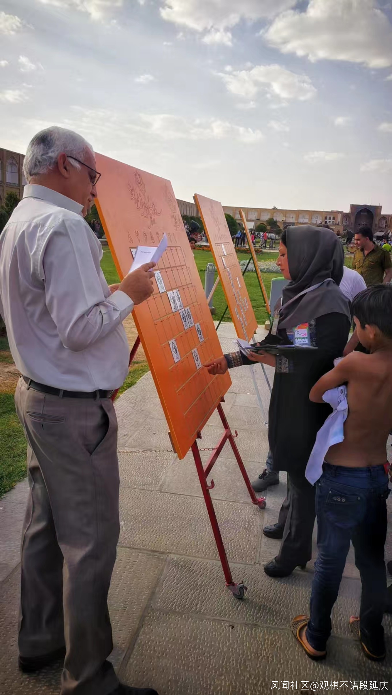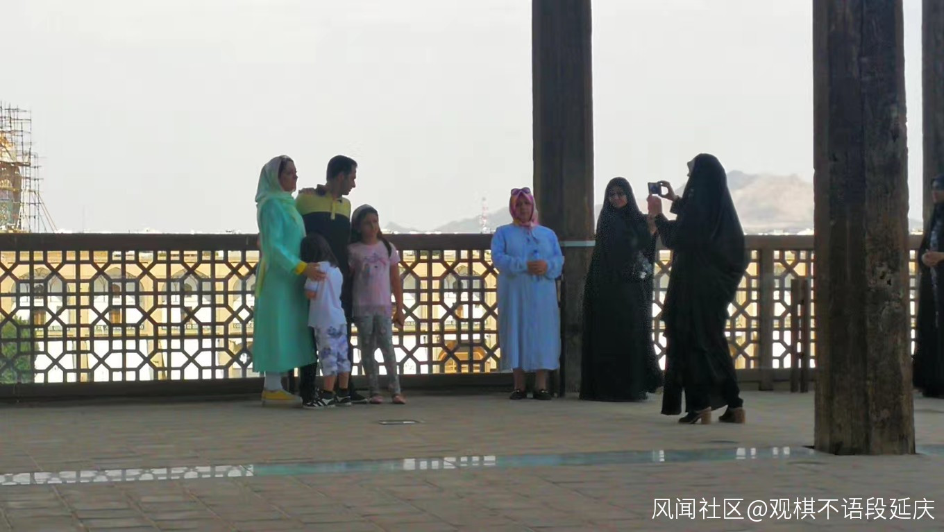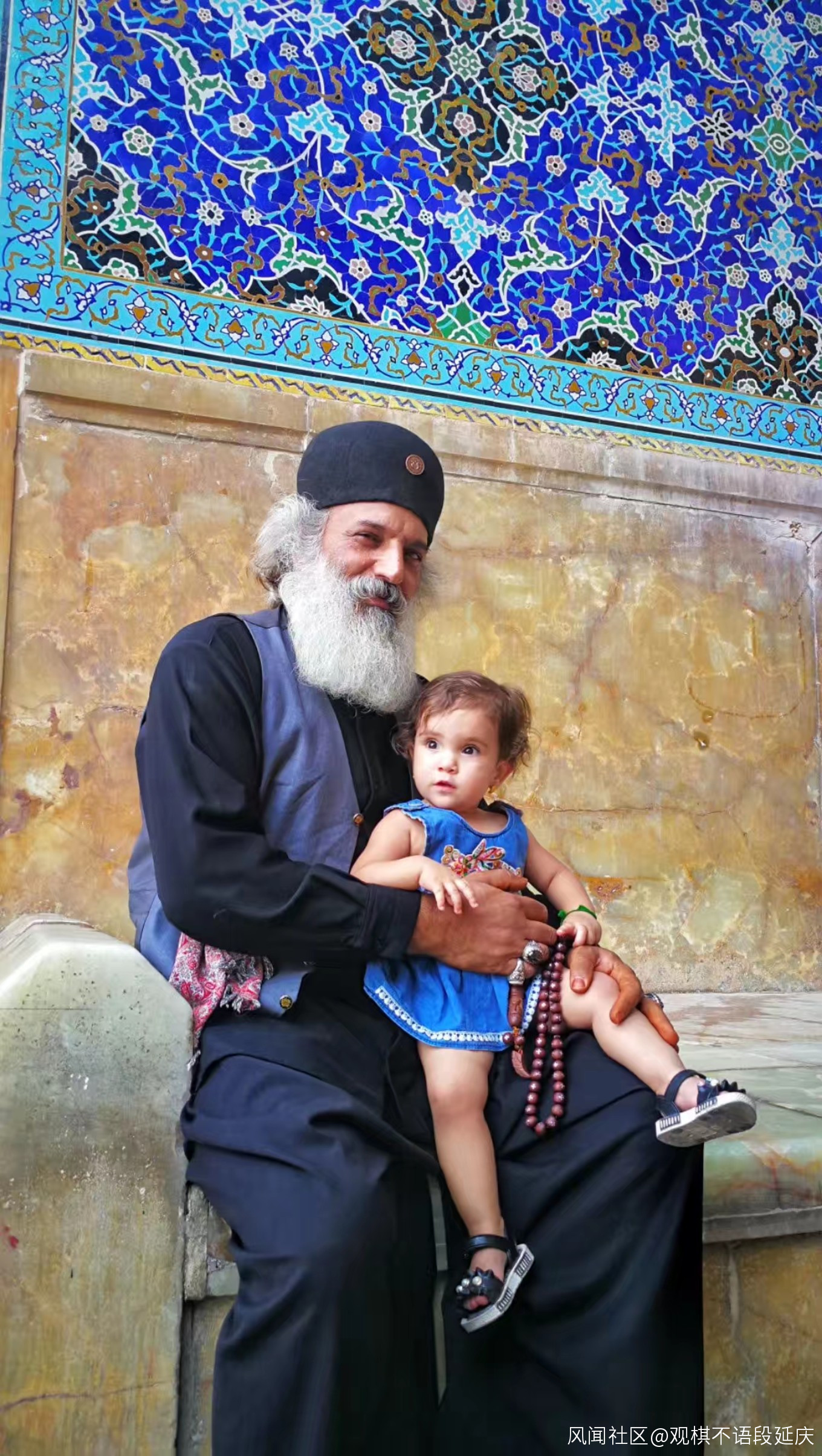 伊斯法罕 ,沙阿清真寺門前,一位老者的裝扮很顯眼,大家爭着合影,先讓孩子合影。