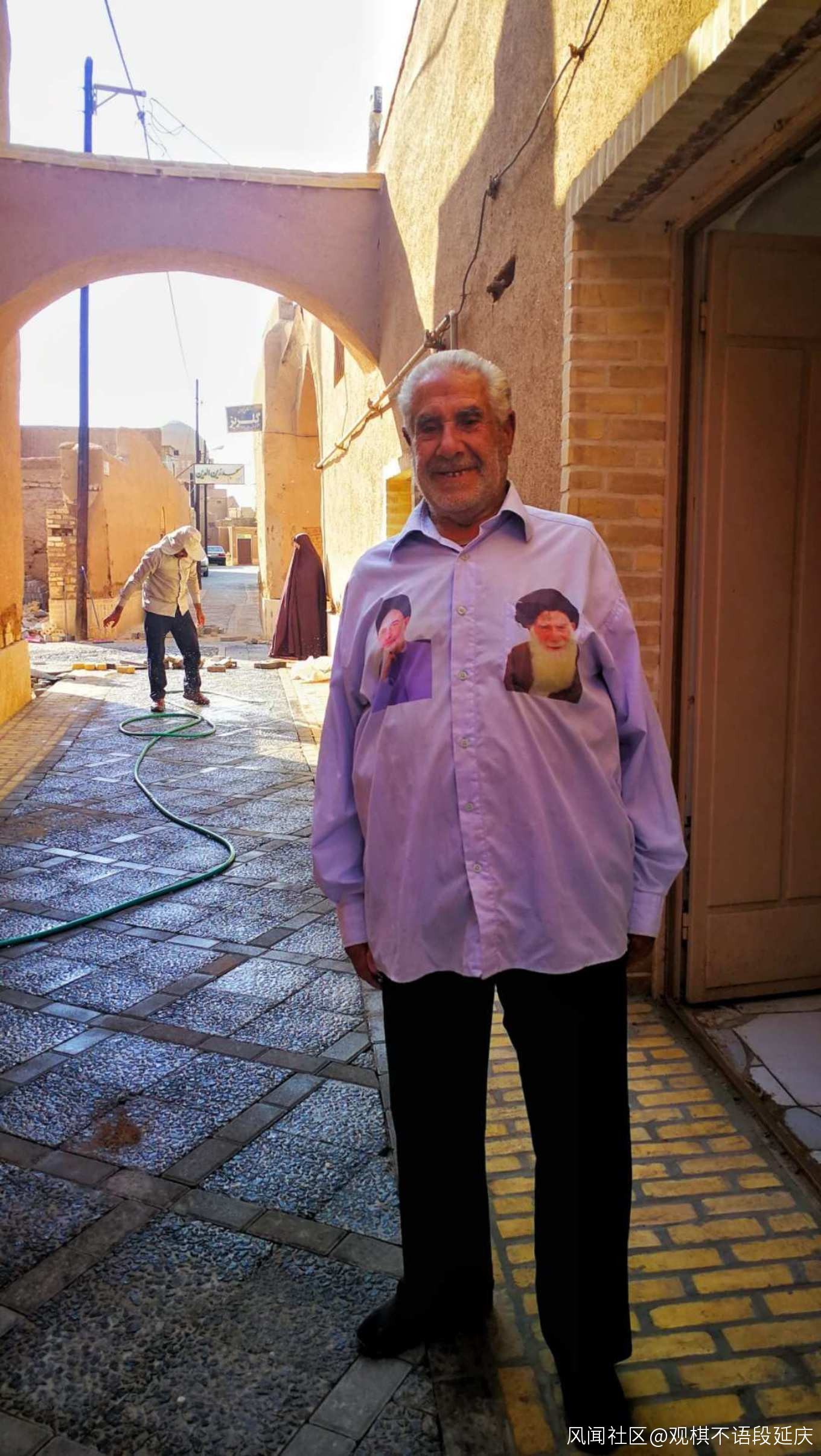 亞茲德,胡 同裏 的老大爺,政治觀點異常明顯,把支持者印在胸前。