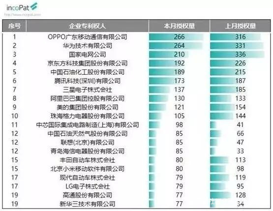 【2019年9月發明授權專利榜,OPPO、華為和國家電網列前三】國家知識產權局數據顯示,2019年9月,OPPO以266件發明專利授權量位列企業專利權人(未做權利人合併)榜首,排名第二、三位的企業分別是華為和國家電網公司。