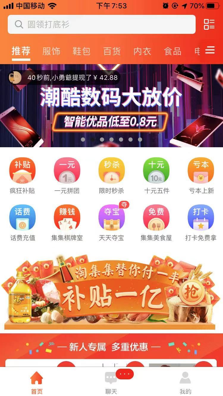 淘集集APP於2018年8月正式上線,通過邀請商家入駐,在線上銷售日用百貨、美妝個護、服飾鞋包、家居家紡、食品水果等產品。在拼多多用9塊9包郵完成對下沉市場的包圍後,這個主打比拼多多更下沉市場的社交電商平台,更是一度把大衣的價格降到了8塊8。