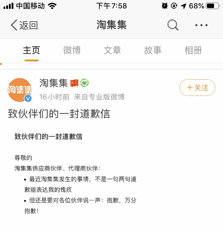 據鋅財經瞭解,10月15日淘集集CEO張正平向商户發佈了道歉信,就近期淘集集遭遇的拖欠商户款項、被黑客惡意攻擊、資金流斷裂等情況進行了説明。
