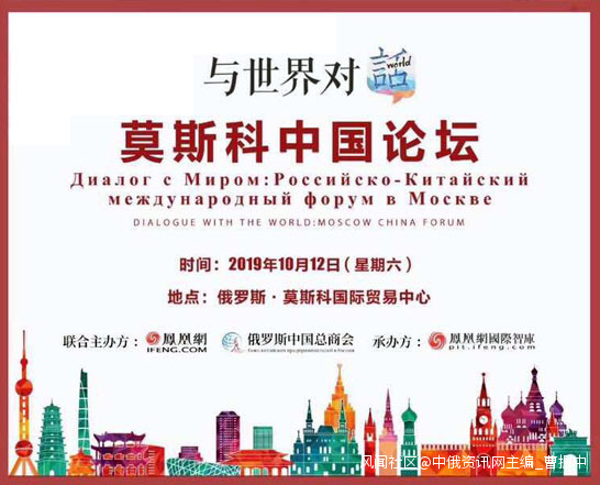 2019年10月12日,由鳳凰網、俄羅斯中國總商會聯合主辦、鳳凰網國際智庫承辦的 “與世界對話——莫斯科中國論壇”,在俄羅斯首都莫斯科成功舉辦。這是在俄羅斯本土舉辦的第一場以中國為主題的海外中國論壇,也是獻禮中俄建交70週年的海外大型活動。中國和俄羅斯最頂尖最權威的重磅嘉賓圍繞中俄建交70週年、中俄關系、一帶一路、能源合作、中俄青年文化交流與傳承等熱點話題展開熱烈討論。
