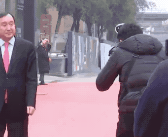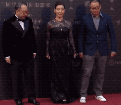 比如紅毯上出鏡率最高的,是這位穿着麪包服的攝影大哥。每次導播都專門切他身後的鏡頭,嘉賓正着走一遍,他倒着走N遍,偶爾會不小心會撞上後面的鏡頭。