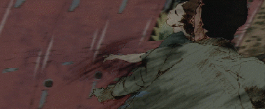 而在全片的最高潮,當少年跨上滑板逃跑時,大平晉也貢獻了整個系列中最震撼的作畫片段。原本寫實的人物造型徹底走形,角色的運動也完全喪失邏輯,變成了瘋癲而無序的扭動。