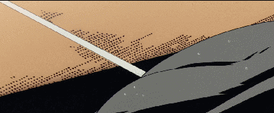 《世界紀錄》並沒有由川尻善昭親自監督,而是交給了與他合作密切的小池健,最終完成了這部令人難以置信的視覺炸彈。受美漫**《罪惡之城》**的影響,小池健非常偏愛有油墨感的黑色陰影與線條,這些陰影構成了人物硬朗的肌肉線條。他喜歡展示很誇張的身體比例與透視角度,人物的手腳往往大得驚人。