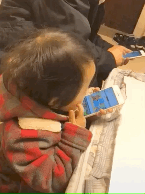 孩子的模仿學習能力是最快的,你總是在他身邊玩手機,不用很久肯定學會。